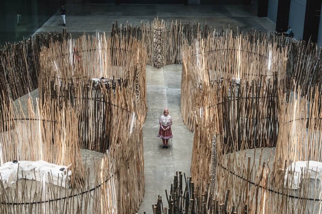 Máret Ánne Sara Dáiddadállusta avasi taideseinstallationsa "Goavve-Geabbil" 14. lokakuuta Tate Modernissa.