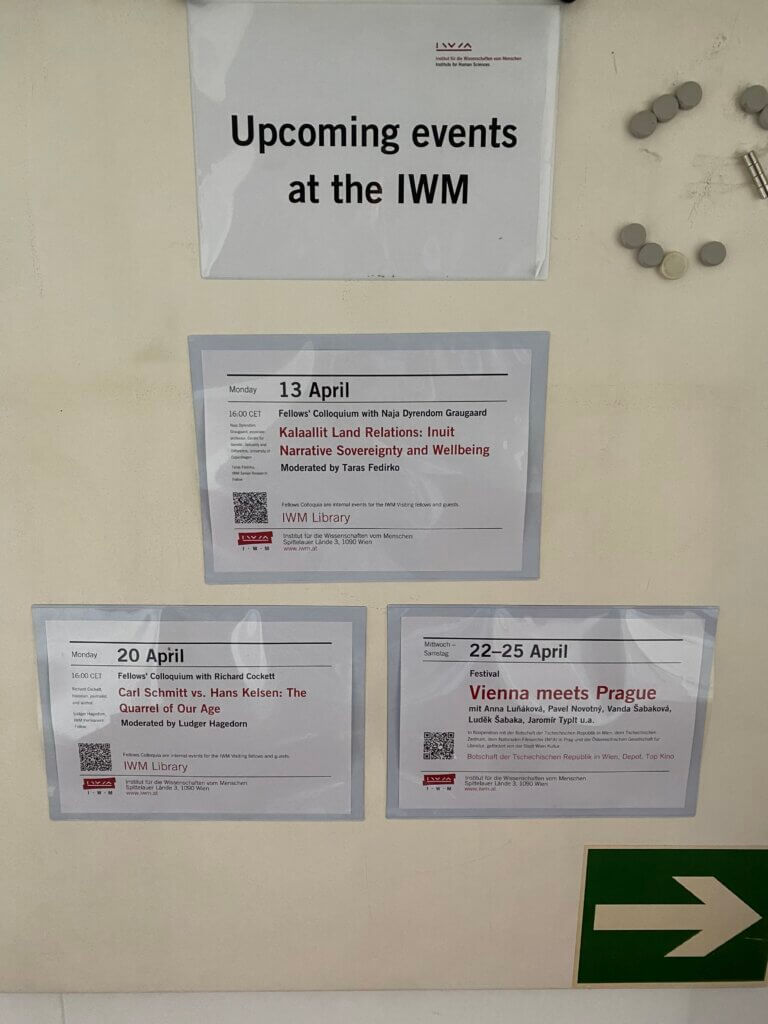 Graugaard is also taking the opportunity to share the work of Birgejupmi in IWM’s Fellows Colloquium program. On 13 April she gave a talk on “Kalaallit Land Relations: Inuit Narrative Sovereignty and Wellbeing” and had a vibrant and insightful exchange with other fellows at IWM.